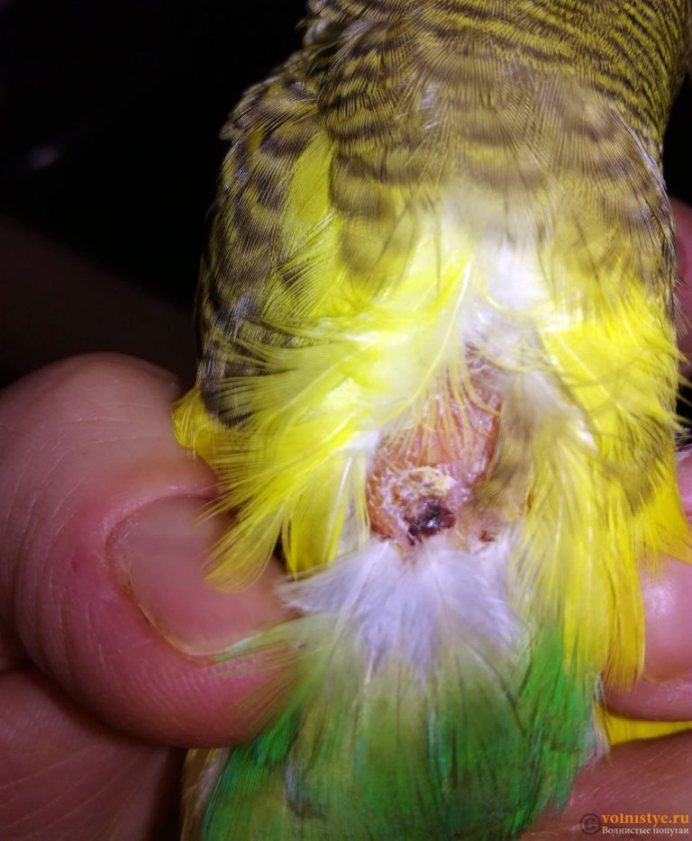 Судить о заражении можно и по общему виду. Паразиты прогрызают в пере мелкие отверстия, и спустя некоторое время становится заметно, что с одежкой попугая что-то не так.