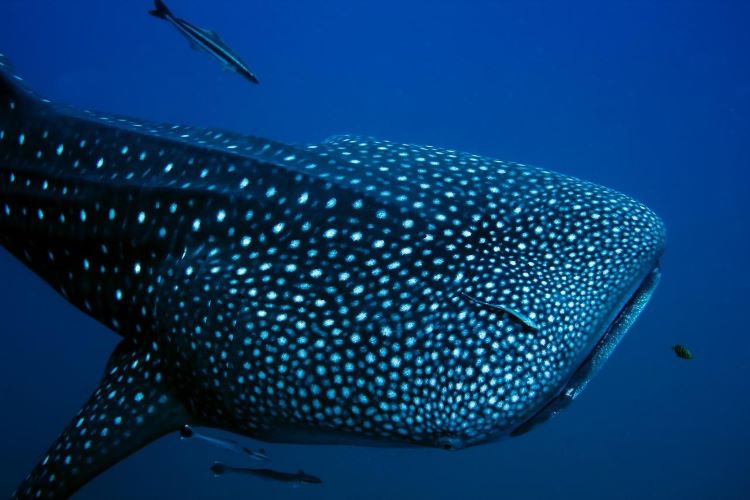 В рейтинг самых крупных рыб планеты можно включить несколько видов акул, поскольку именно эти хищницы отличаются от прочих видов огромными габаритами. Но крупнейшей из них, да и вообще среди всех ныне живущих рыб является китовая акула. Длина ее тела составляет около 12 м, а некоторые особи достигают и 20 м. Вес гигантов, употребляющих в пищу только планктон, переваливает за 30 т, что сравнимо с параметрами среднего кашалота. Голова акулы имеет приплюснутую форму, с огромной 1,5-метровой пастью на конце. Тело же у неё толстое, спина приподнимается в виде горба. Окраска акулы примечательна большим количеством мелких белых пятен по всей спине, голове и на плавниках, что помогает отличать особей друг от друга и следить за их перемещениями. Этот редкий вид акул пока ещё встречается в тёплых водах всех океанов, но в скором времени может исчезнуть с лица Земли.