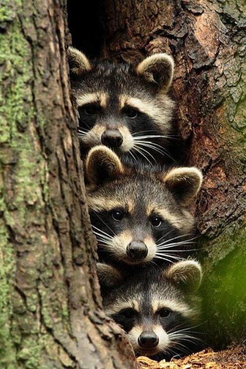 ♥ Вы только представьте, мамочка-енотиха кормит своих деток 24 раза в день! И запасает до 12 норок для экстренных переселений своего потомства в случаях опасности.
