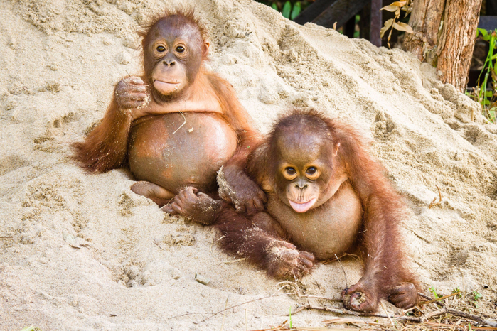 показывает язык на отдыхе милая обезьянка рыжая обезьяна