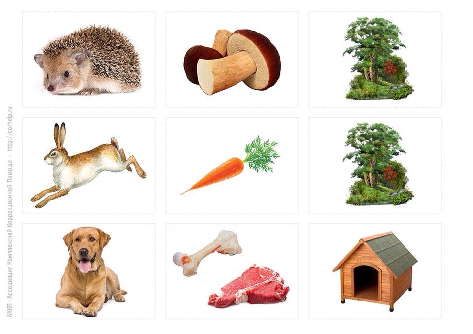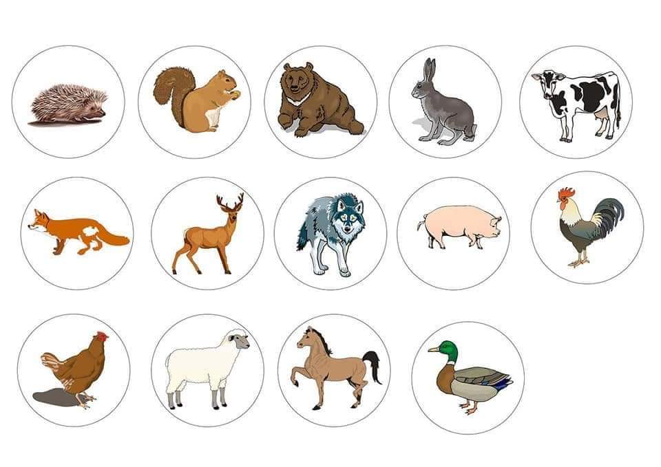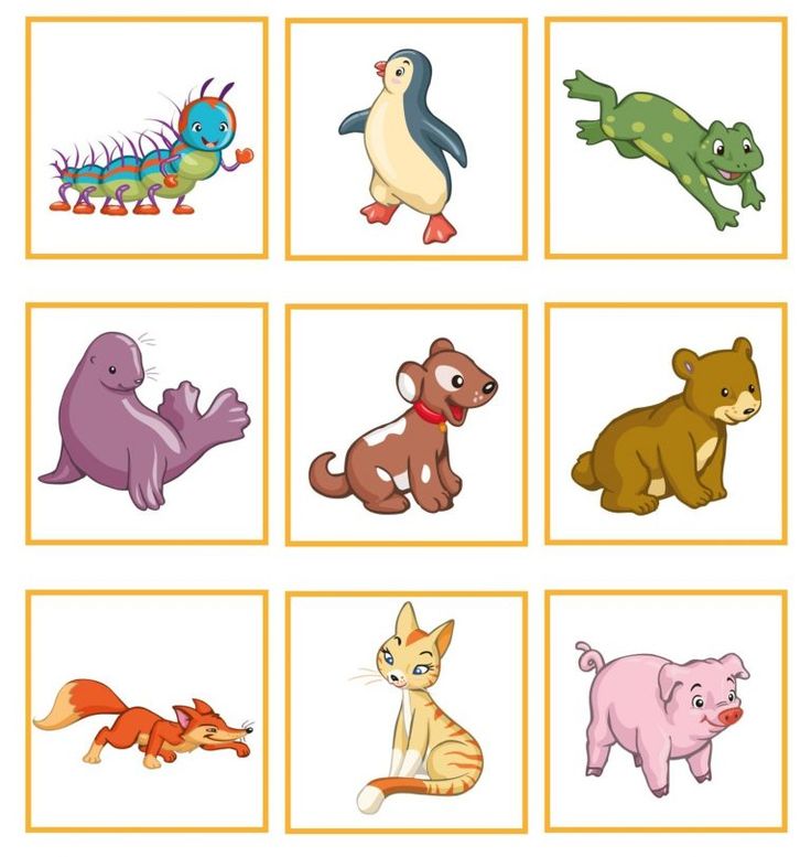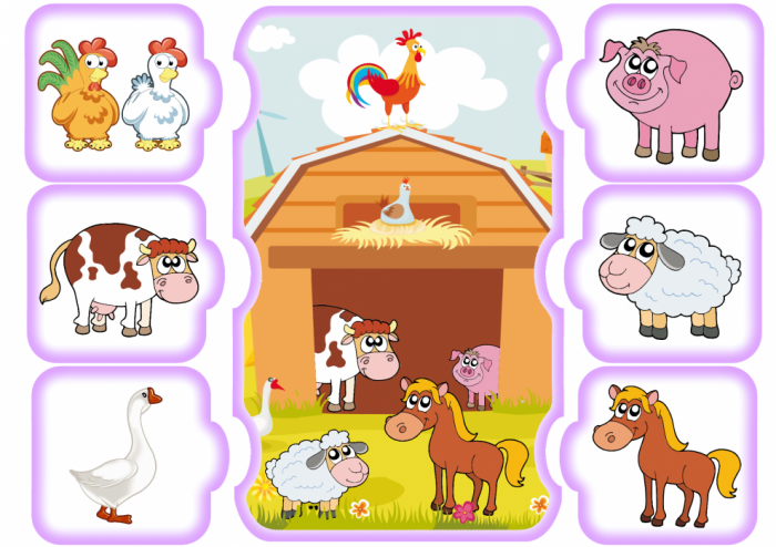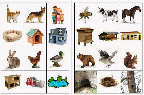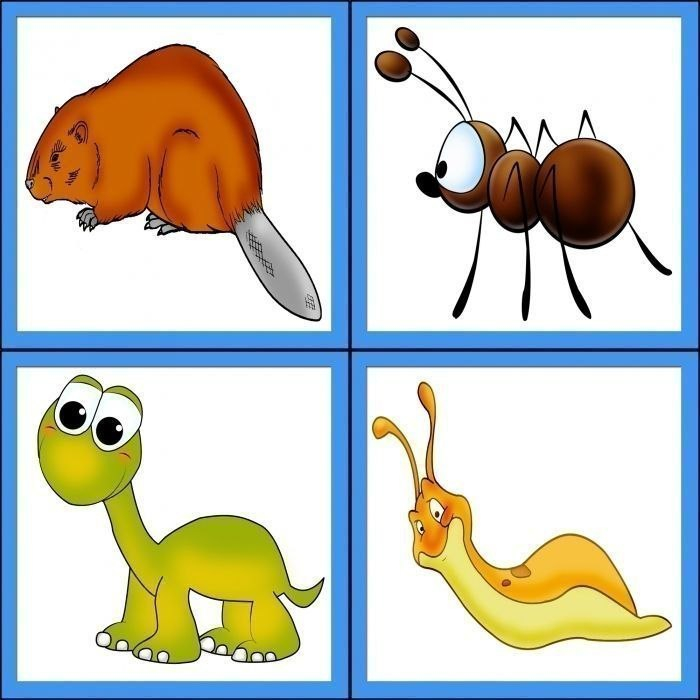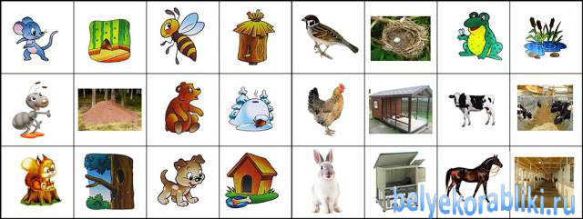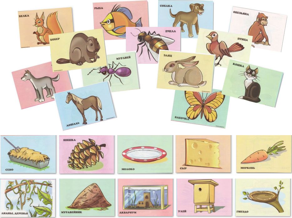 Материал — картинки большие и маленькие с изображение животных.