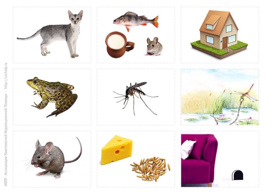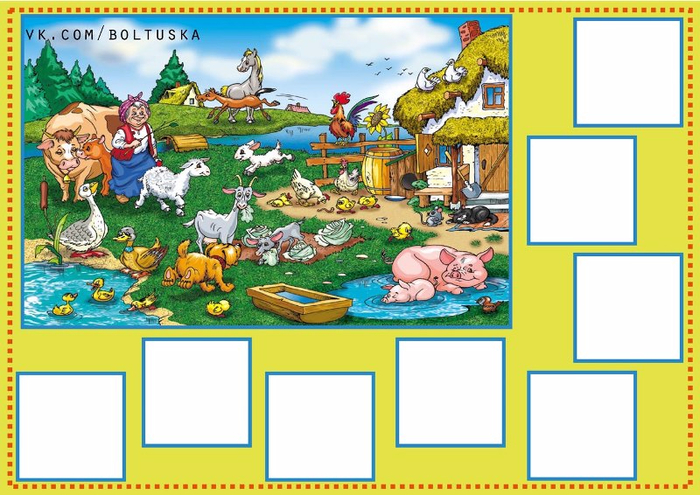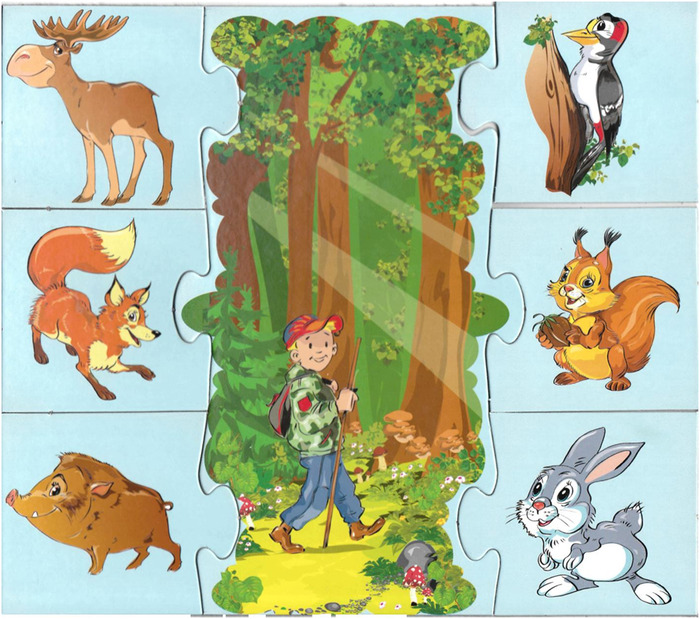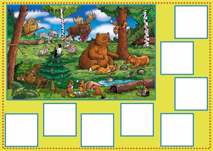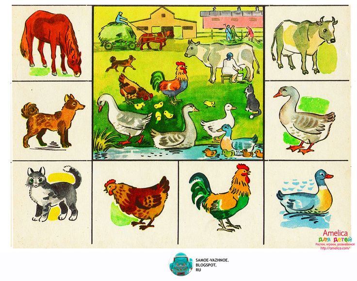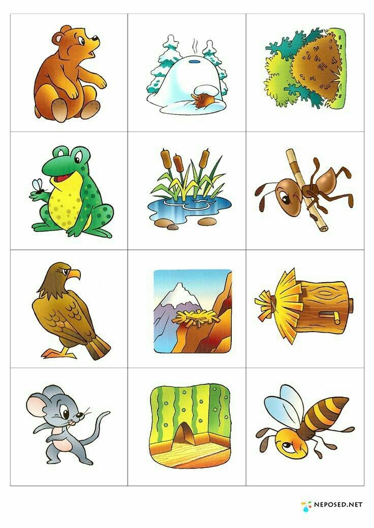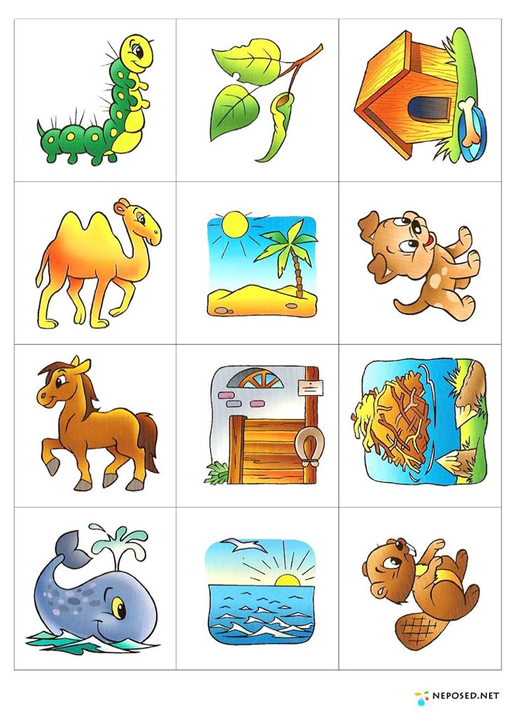 Материал — картинки большие и маленькие с изображение животных.