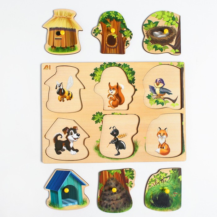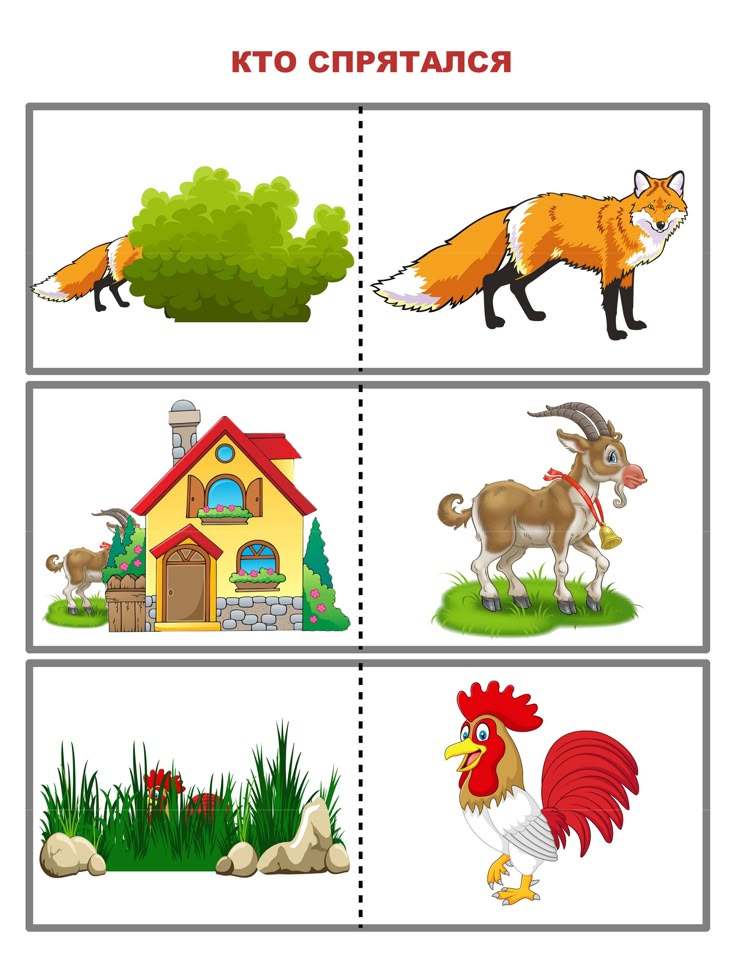Игра «Кто живет рядом с человеком?». Педагог предлагает детям назвать животное (кошка, лиса, собака, заяц, курица, корова, коза, белка), изображенное на картинке, и ответить на вопрос: «Это домашнее животное или нет?» Если животное домашнее, то педагог предлагает ребенку соединить линией рисунок данного животного с домом.