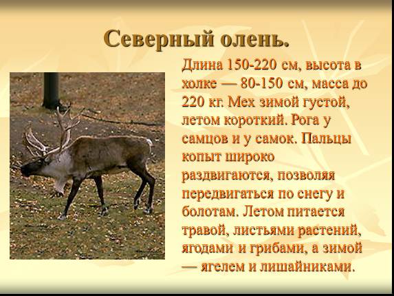 Олени бывают крупные и высокие, маленькие и низенькие. Относятся к группе парнокопытных и семейству оленевых, в которое также входят косуля, лось и лань. Можно ли определить возраст оленя по рогам? Где у оленя зеркало? Что едят и как живут? Кого боятся? И за что их ценит человек?