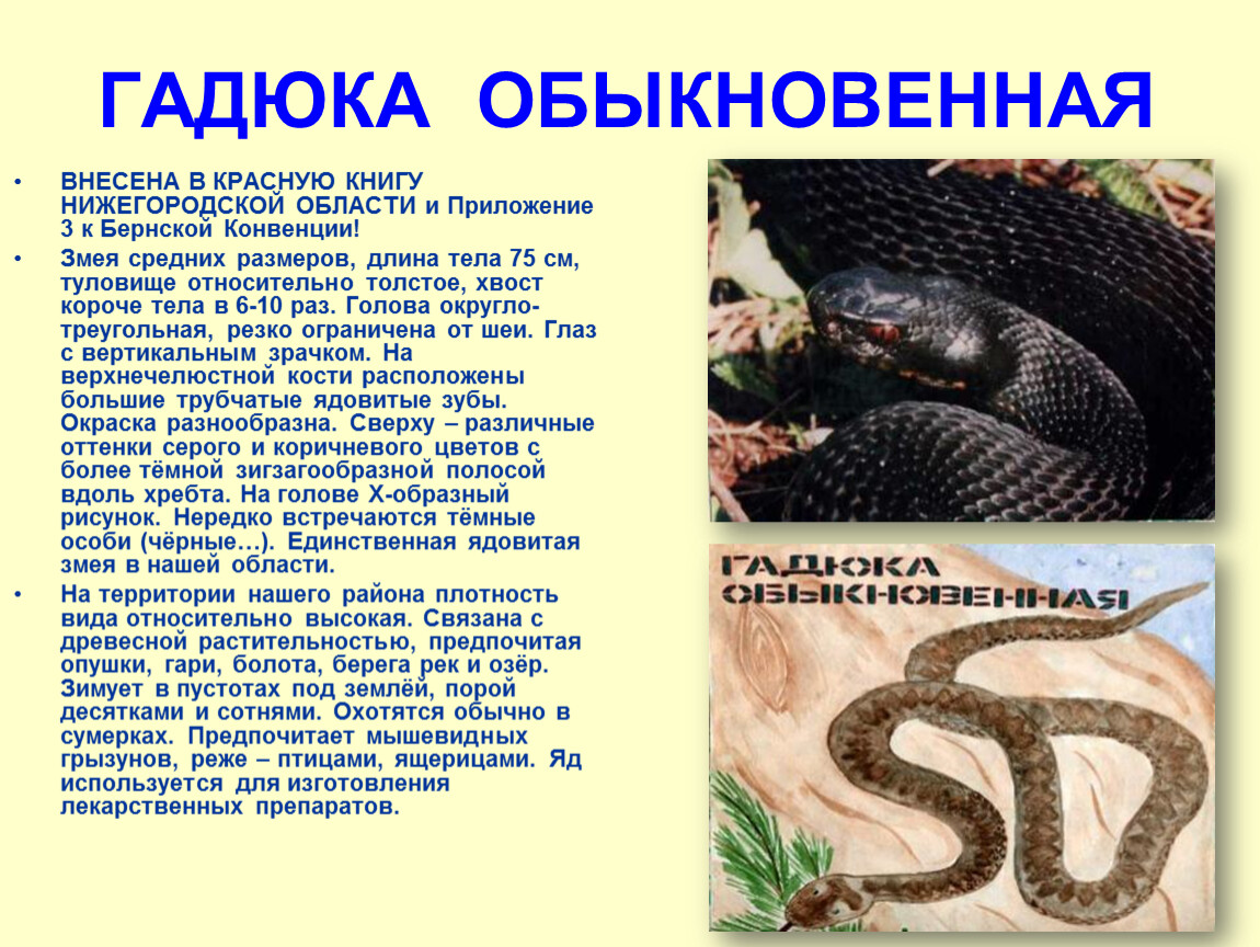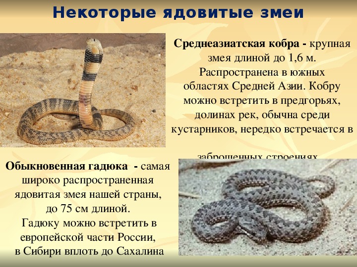 считалась священным животным у древних египтян, она была символом могущества, ее изображение украшало головной убор фараонов. Семейство гадюк живет в Европе, Азии и Африке; шире других распространена обыкновенная гадюка, она заходит даже за Полярный круг. Там где зима холодна, гадюки проводят ее в укрытиях, впадая в спячку, и в удобном для зимовки месте собираются, иногда, десятки и даже сотни змей. Для жизни человека яд обыкновенной гадюки серьезной опасности не представляет, а чтобы избежать укуса, достаточно соблюдать разумную осторожность в местах, где эти змеи многочисленны. Реальную угрозу для человека представляют крупные гадюки: гюрза