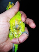 Иногда вокруг уха можно заместить редкое оперение. Этот признак не всегда сигнализирует о проблемах с ухом. Возможно, что у попугая началась линька. Для достоверности в здоровом состоянии птицы необходимо обратиться к ветеринару.