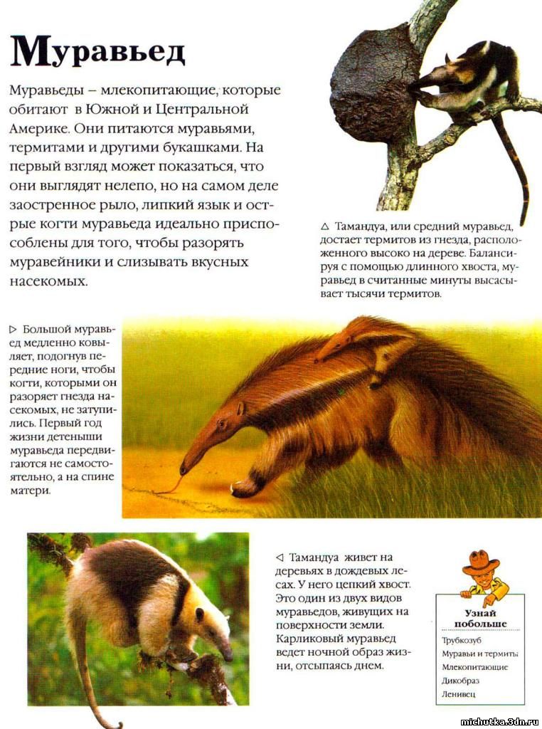 - Хотите узнать больше о самом крупном из видов муравьедов? Посетите страницу гигантского муравьеда на сайте зоопарка Сан-Диего.