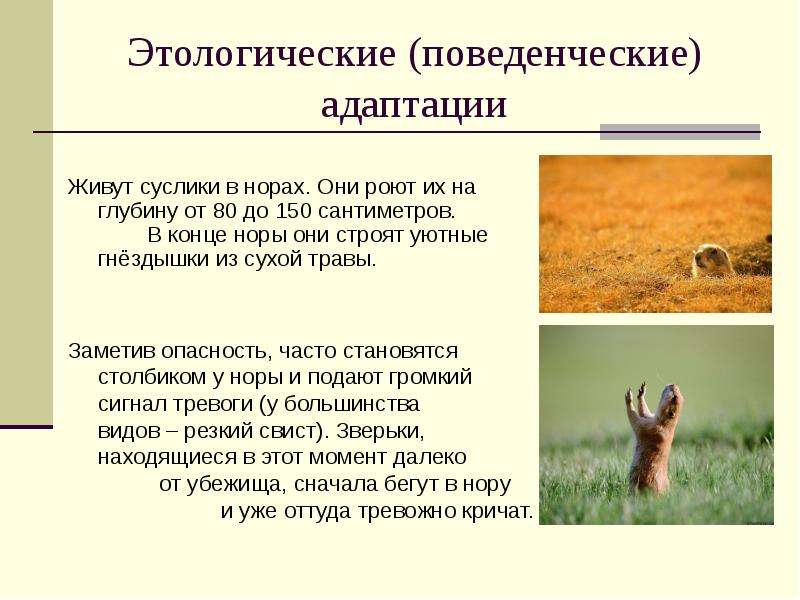 У сусликов имеется противоядие против змеиных укусов, что не приводит к смертельным исходам. Суслики редко отходят от своих нор дальше чем на сто метров, чтобы успеть спрятаться.