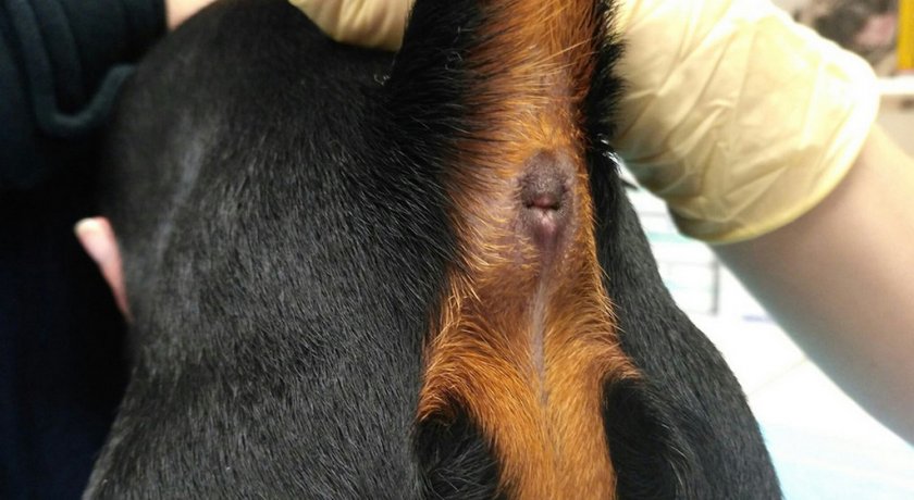 При осмотре анального отверстия животного можно заметить, что оно отечно и гиперемированно. Слева можно посмотреть, как геморрой у собак выглядит на фото. Как и у людей, у животных можно встретить внутреннее и внешнее расширение геморроидальных вен.