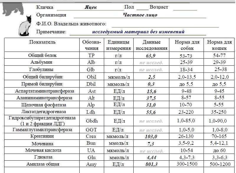 БИОХИМИЧЕСКИЙ АНАЛИЗ КРОВИ — Ветеринарная служба №1 на Ленинском 106