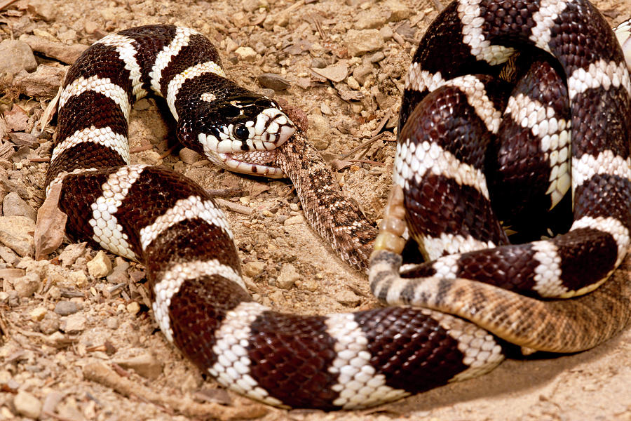 zonata), мексиканских королевских змей (L. mexicana) и серополосых змей. королевские змеи ( L. alterna ) время от времени поедают других змей. Хотя конкретные данные об уровне их иммунитета к местным гадюкам отсутствуют, вполне вероятно, что большинство из них проявляют некоторый иммунитет к яду гремучих змей и могут потреблять гремучих змей.