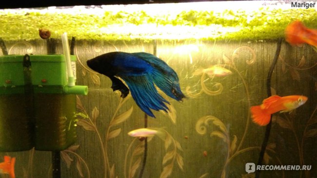 Почти год назад я стала счастливой обладательницей аквариума на 20 л (фирма тетра, фильтр, свет, воздух в комплекте) — друзья старшего сына подарили нам его на шестилелетие))). На рыбок не скупились: 2 золотые, сом, гуппи, барбосы…..кого там только не было! Конечно многие не выжили, но золотые и сом жили достаточно долго. Сом попался какой-то «быстрорастущий» и за пол года вымахал до 7 см. Аквариум чистить замучилась! Золотые — засранки еще те)), тем более литраж для 2х катастрофически мал. После трагической гибели одной из них (дети перекормили и у нее живот раздуло), я отдала сома и вторую золотую рыбку и решила завести кого-то более подходящего для своего мини-аквариума. Проконсультировалась в магазине и остановила свой выбор на петушке (уже пожалела очень), стайке неонов- 5 шт и еще одной рыбке (вроде гурами). Продавец уверяла что они нормально уживутся вместе.