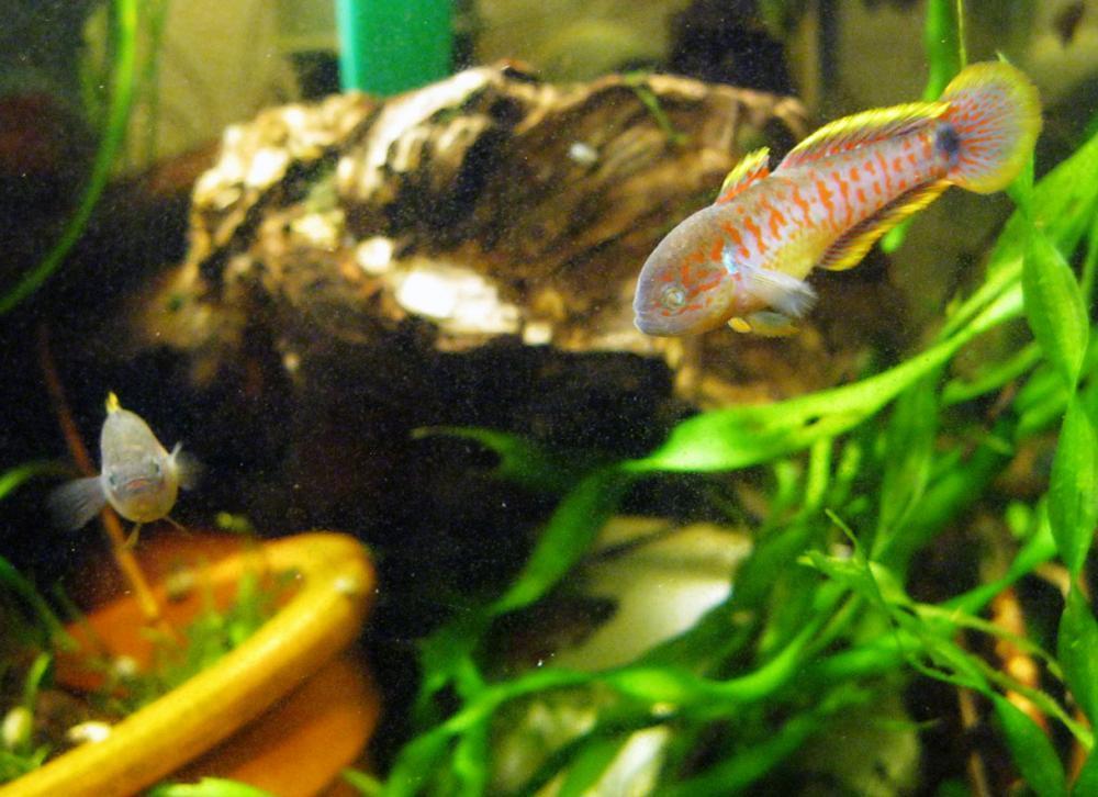 - Лялиус будет не самым спокойным соседом для гуппи, но все же приемлем. Позаботьтесь об укромных местечках, тогда они смогут неплохо уживаться вместе.