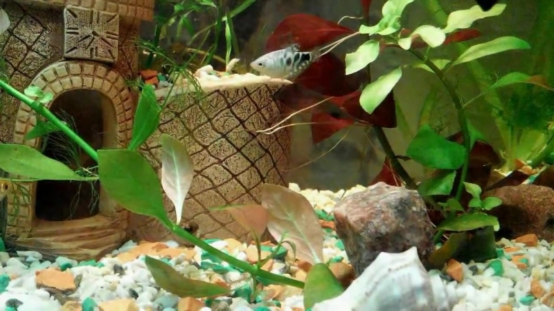 - убедитесь, что в аквариуме есть достаточно укромных мест в виде высоких густых водорослей.