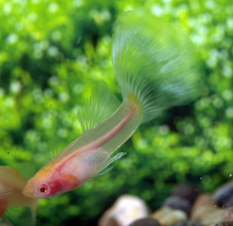 Может случиться так, что у стеклянных гуппи черный меланин тоже колеблется, что еще больше подчеркивает прозрачность их тел. Стеклянных гуппи разводят так же, как и гуппи-альбиносов.