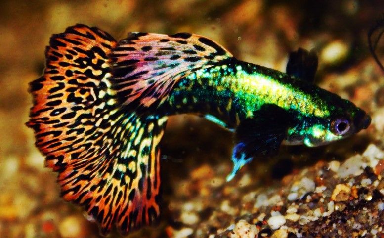 Металлические гуппи обладают уникальной способностью прятаться от хищников благодаря пигменту иридофора, который позволяет им менять цвет, имитирующий окружающую среду.