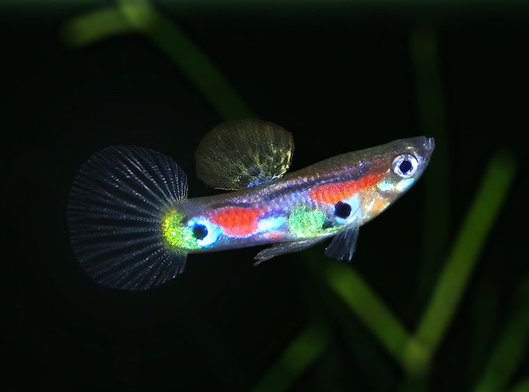 Стеклянные гуппиСтеклянные гуппи имеют генетическую особенность, которая препятствует выработке гуанина, что делает их прозрачными. Гуанин — это, по сути, серебряный краситель, который придает рыбе блеск и играет роль отражения света и, таким образом, предотвращения прозрачности.