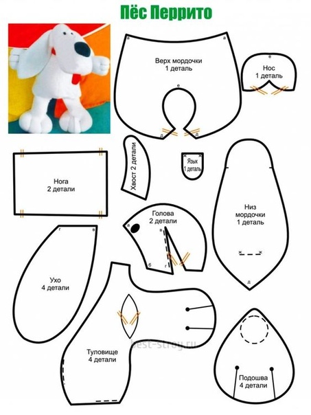 1. Наметьте мелом детали собачки на ткани и аккуратно вырежьте.