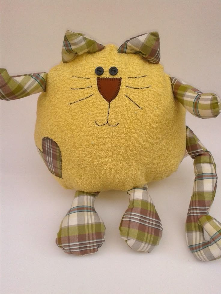 Кадр: @Let’s make it together / YouTubeИз ткани вырежьте два одинаковых круга. Насборите их по краям и набейте. Пришейте к котику получившиеся лапки.