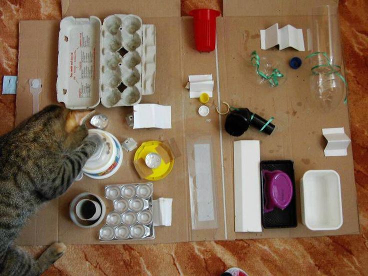 Просто заполните коробку или контейнер пустыми втулками от туалетной бумаги, добавьте несколько его любимых лакомств и смейтесь, наблюдая за тем, как ваш питомец делает это!