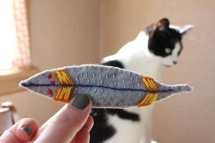 Старый носок, мягкая упаковочная бумага (или что-то, чем можно набить носок) и перманентный маркер — все, что вам нужно, чтобы создать игрушку в виде рыбки для вашей кошки. Элиза Ксавье из KittyClysm обещает, что эту игрушку своими руками можно сделать быстро и легко (вы можете сделать ее за три шага!), но она подарит вашей кошке бесчисленные часы развлечений.