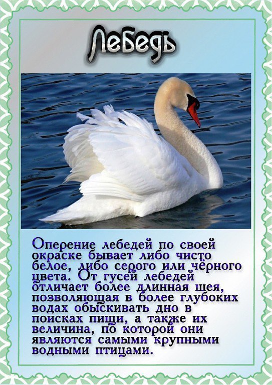 Самку называют загоном, а самца – початком. - Кикнофобия или цигнофобия – боязнь лебедей.