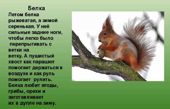 20. Белка кроме растительной пищи ест также мясо маленьких птиц, мелких грызунов, молодых зайчат, а также яйца птицы.