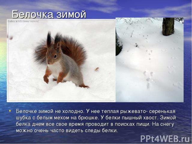 - Зимой белки не впадают в спячку. Перед холодами они значительно прибавляют в весе. Зимой зверьки предпочитают проводить большинство времени в своих норах.