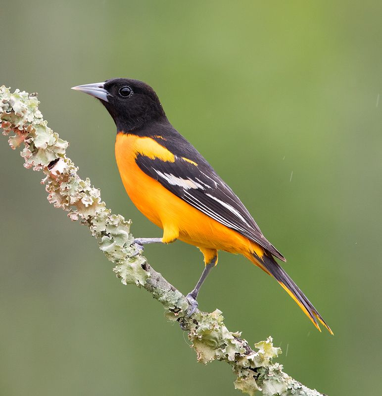 Одна из самых ярко окрашенных певчих птиц на востоке, огненно-оранжевая и черная, разделяющая геральдические цвета герба лорда Балтимора 17-го века.