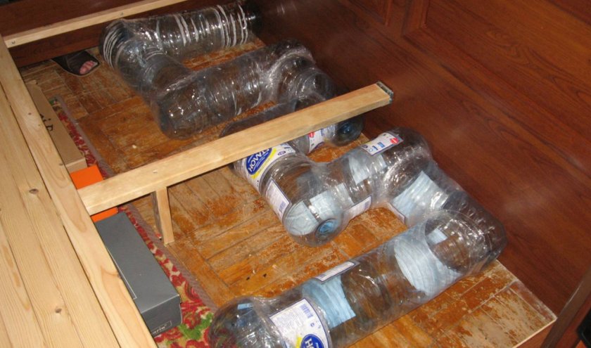 Основным строительным материалом служат прозрачные пластиковые бутылки (для жилых помещений) и непрозрачные флаконы (для подсобных).