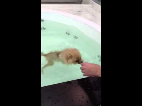 Приучать шпица к водным процедурам необходимо в комфортных условиях. Вода должна быть не горячей и не холодной. Если щенка моют под лейкой, то струя воды не должна быть сильной. Чрезмерный напор может испугать щенка и отбить в дальнейшем желание купаться.