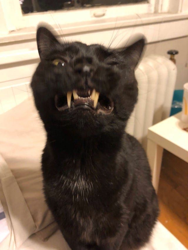 К чиханию могут привести и болезни зубов. Дело в том, что корни зубов находятся близко к носовым ходам. Инфекции в корнях этих зубов могут проникать в носовые ходы и вызывать чихание у кошек. Дополнительным симптомом у кошек с проблемами зубов может быть слезотечение.