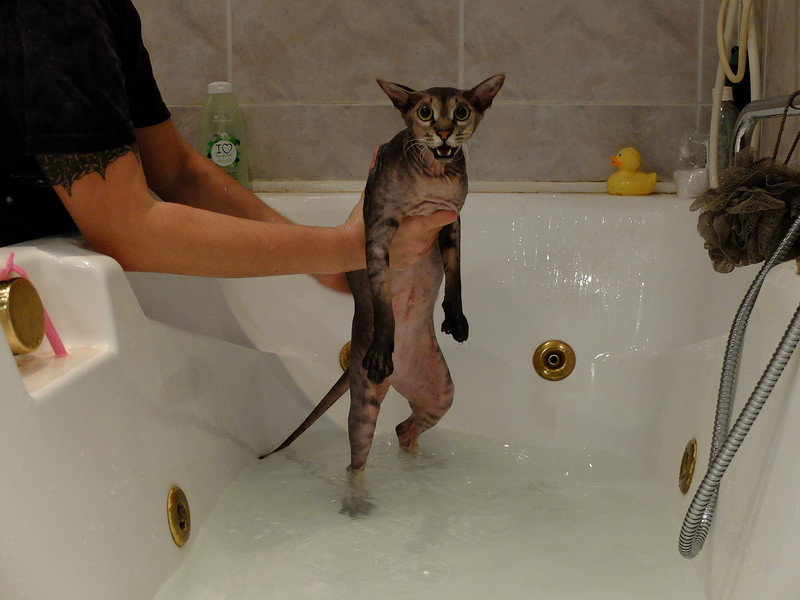 - Шаг № 2. Начинаем купание кота