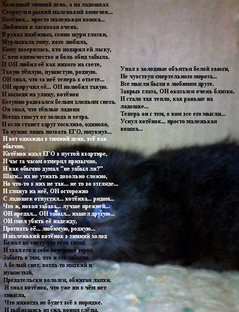 Очень многие авторы пишут в своих стихах именно о том, как хорошо кошке там, где нет болезней, голода и одиночества — так, как сделал это автор под псевдонимом Фелис Кактус: