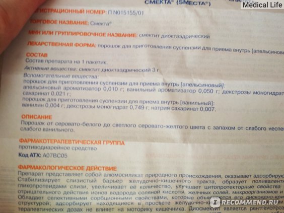 Первое, что нужно понимать – Смекта, это не лекарство, то есть использоваться она должна комплексно, с назначенной врачом терапией. При этом прием Смекты и медикаментов нужно разделять по времени, поскольку абсорбирующий эффект порошка снизит лечебное действие.
