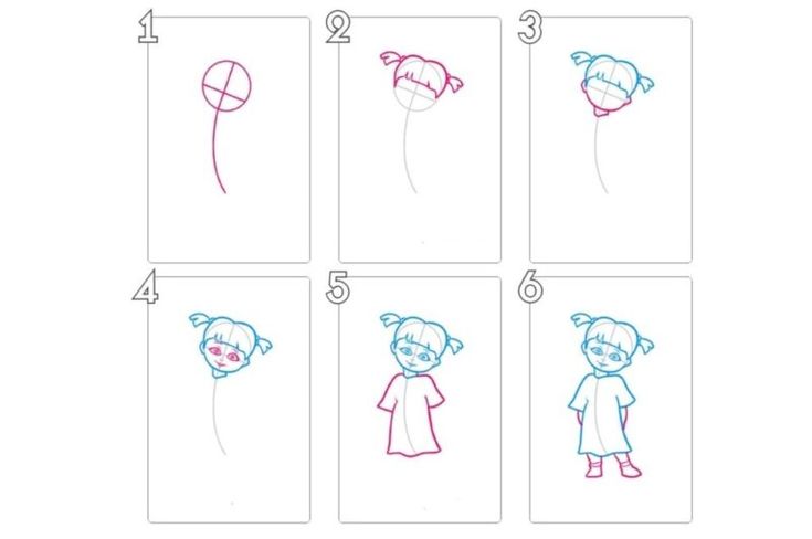 - Вытереть вспомогательные линии и раскрасить фигурку разноцветными карандашами.