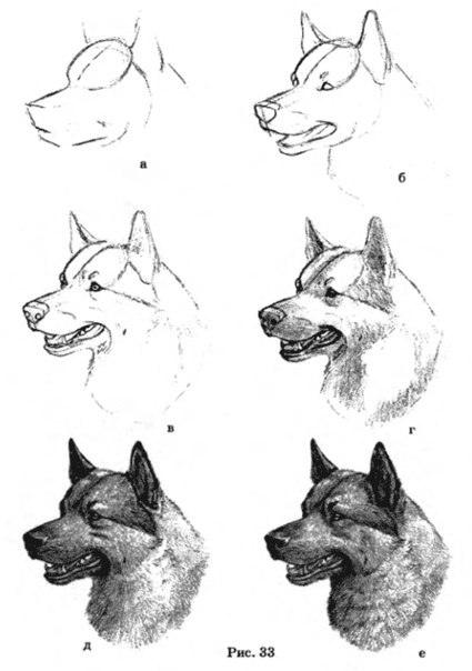 Приступаем к более серьезному заданию – поэтапному рисованию собаки с головы до хвоста. Тут придется потрудиться, это вам не рисование собаки из тройки. Но это и не что-то из фантастики, с таким заданием вы точно справитесь, если будете внимательны.