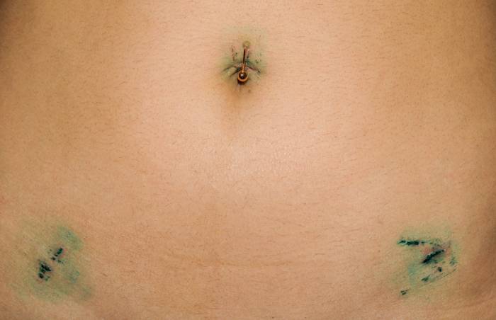 - воспалительные изменения передней брюшной стенки в месте пункции — флегмона, абсцесс;