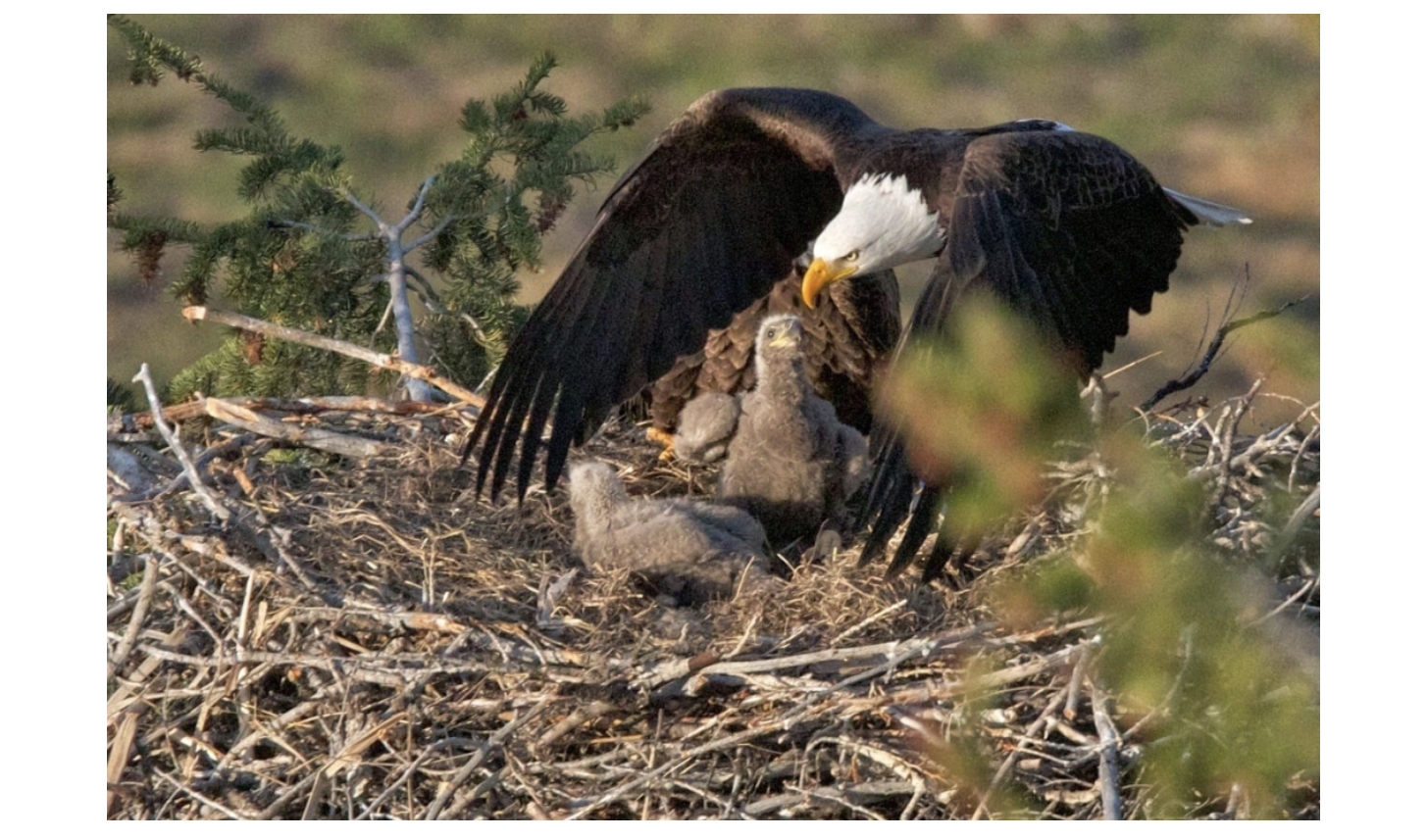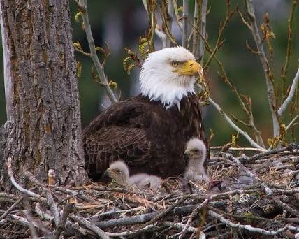Детеныш белоголового орлана с родителем в гнезде