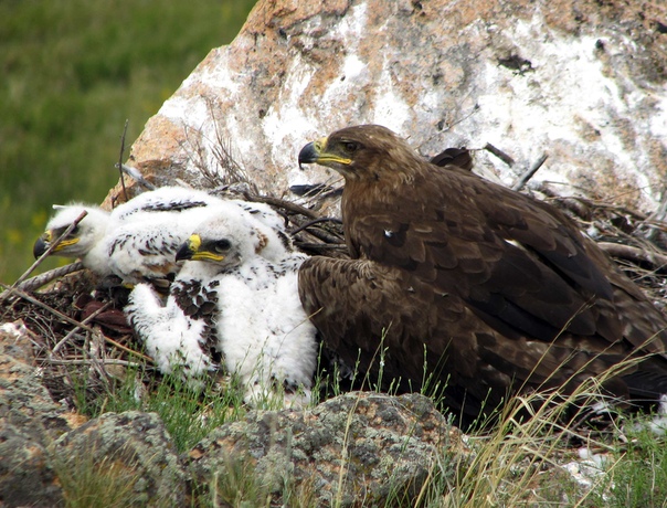 Мать присматривает за птенцом беркута