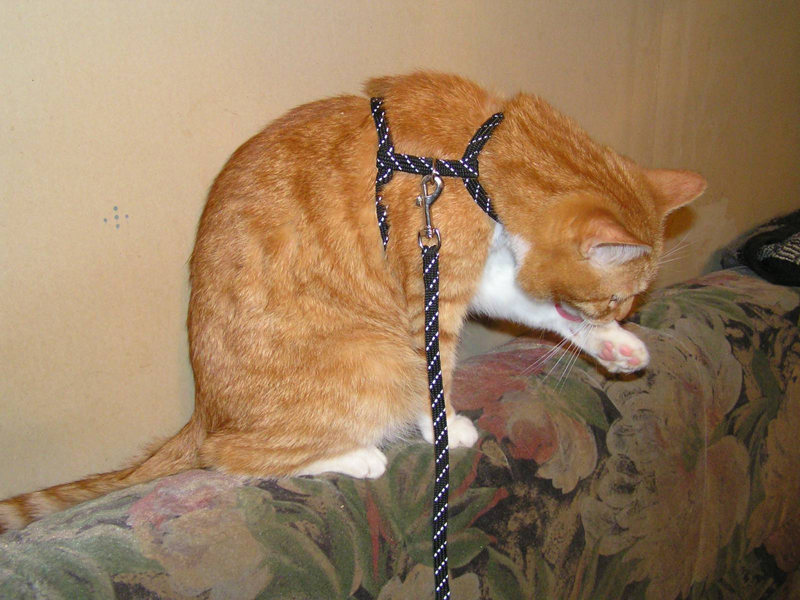 - Обязательно следите за своей кошкой , когда она надевает шлейку.