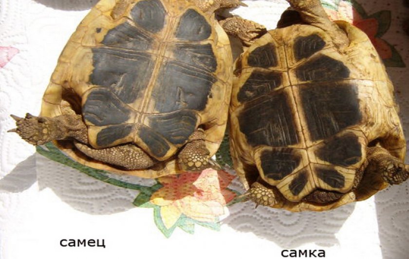 - вытянутый и темный панцирь, крупные коготки и хвост. Появляется при половом созревании, наступающим у домашних черепах в 5 лет;