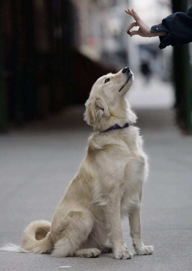 В дальнейшем животное будет садиться только по сигналу рукой.