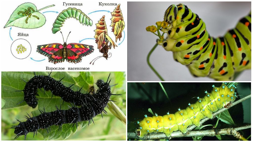 Описание: Характерные беловатые гусеницы с желтыми пятнами по всему телу и большими черными пятнами.