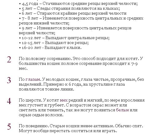 Определение возраста взрослой кошки