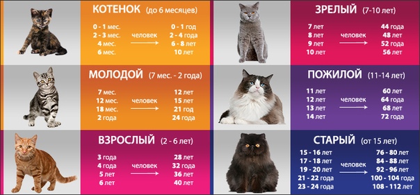 Если интересно узнать возраст кошки в переводе на человеческий читайте тут.
