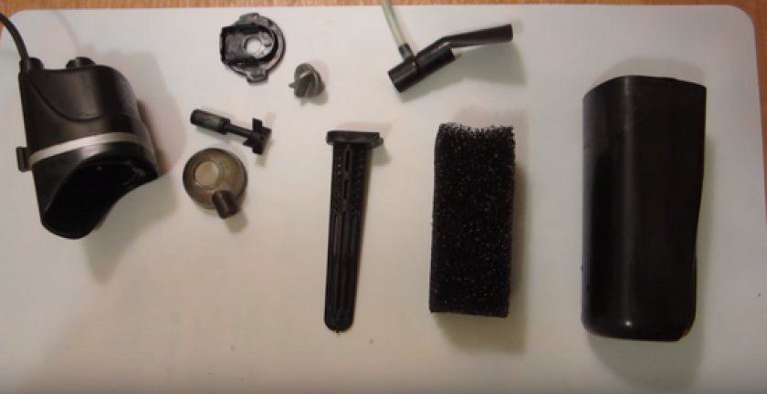 - Отсоединить фильтрующие блоки, разобрать предохранительный колпачок, вынуть мотор с лопастями.