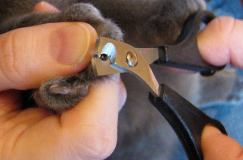 - Подносит к лапке когтерез, если кошка спокойна, то щелкает им. При беспокойстве гладит и успокаивает ее, а потом повторяет процедуру.