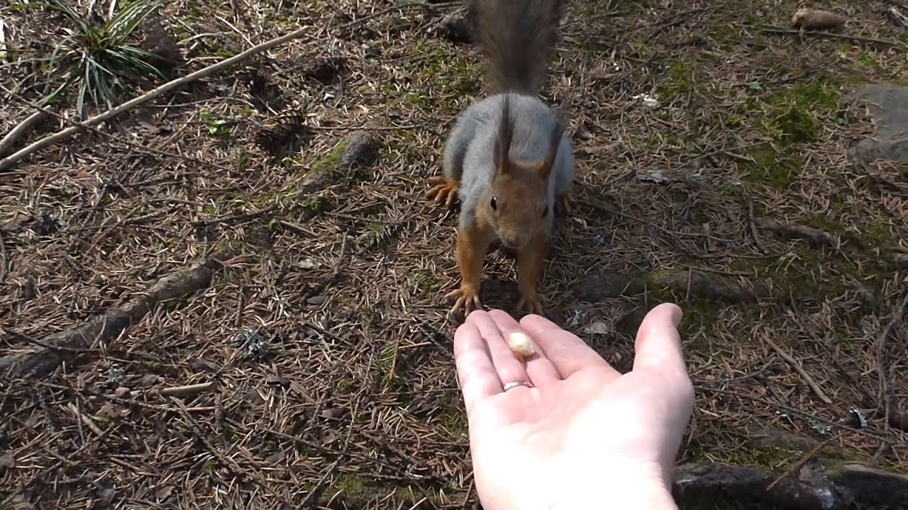 Также используется метод подкармливания. Самые любимые лакомства это орехи, семена, фрукты. В принципе, белки едят практически всю растительную пищу.