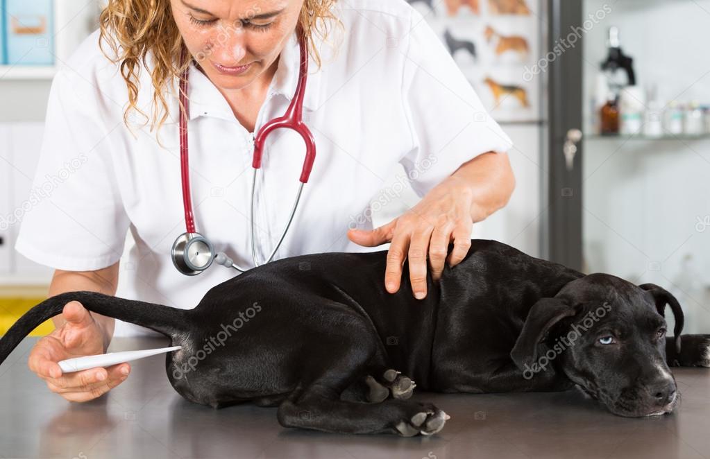 Измерение температуры тела собаки